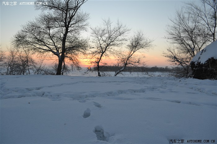 我们在韩屯村,雾凇岛的对岸,所以看“江上落日”是“日落雾凇岛”。