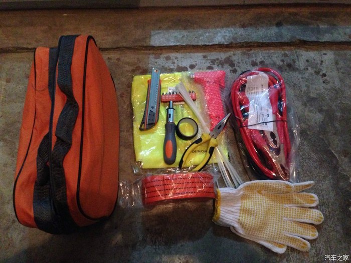 橙色的包就是工具包。里边还放了灭火器、万用表。箱子下面黄色的,是防滑垫。
