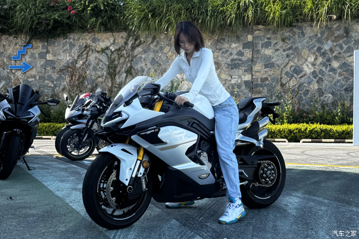 最后说说这台车的座高表现,750SR-S座椅高度为805mm,下面小姐姐身高170cm可以轻松实现双脚全脚掌着地,对于大部分车友还是较为友好的。不过213KG的整备质量并不算轻,特别是原地牵车的过程中需要花点力气,但是当骑起来以后这台车的操控并不会觉得笨重。