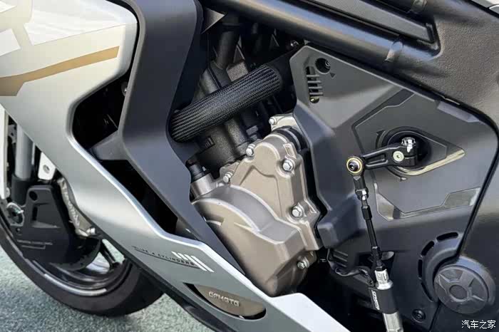 说完外观和配置上的表现当然要介绍一下750SR-S搭载的这台直列四缸水冷引擎。这台引擎完全由春风独立自主研发,并且在结构和体积上都有不错的表现。引擎实际排量为749cc,拥有82kW/10,250rpm的最大功率和80Nm/9,000rpm的最大扭矩,最大马力111.5匹,在双口冲压进气的作用下能够额外提供2kW的功率。