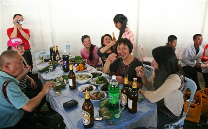 路上还碰到村民办婚礼,我们去看,被邀请参加。刚刚在车上还在说老挝啤酒有名,这下可以海喝了!