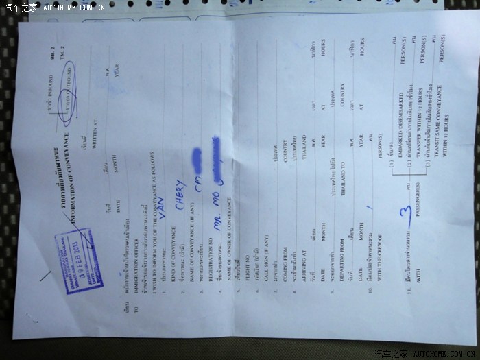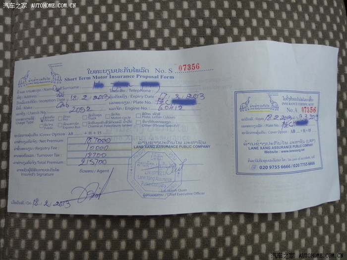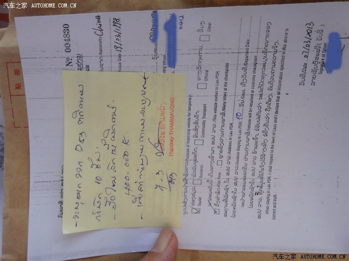 车辆入境这里要说明一下:从中国由老挝过境到泰国,标准的路线是,从中国入磨丁口岸,然后从会晒出境到泰国。回来时走原路没有问题。