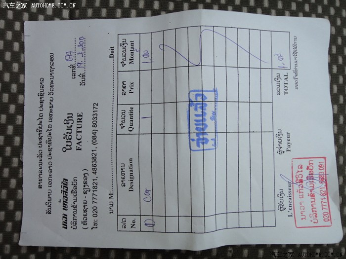 但我们现在要从万象入境,在网上查了,要罚款25万老币,实际在办手续时,他问了我一下车的购买价,然后手写了一张罚款条,要交40万。
