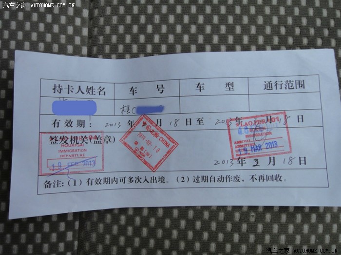 需要办的有:车辆查验卡,回国后要收回的。这里我们回国日期填错了,但也没关系。