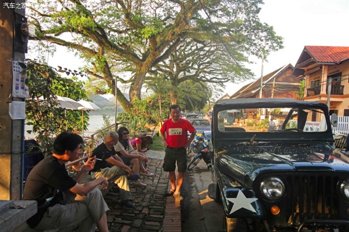 5点多点到达朗勃拉邦。我们将车停在路边,由小陈去找酒店。路旁有一辆吉普。