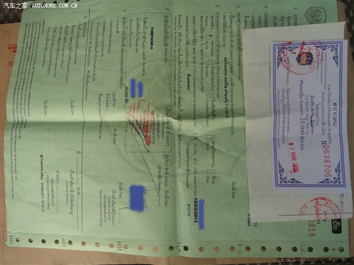 再办正常过关手续时又交了4万每车,收据好象是25000老币。