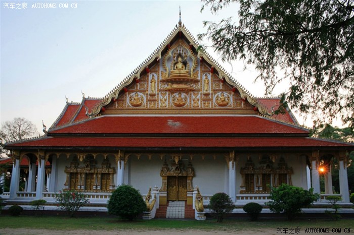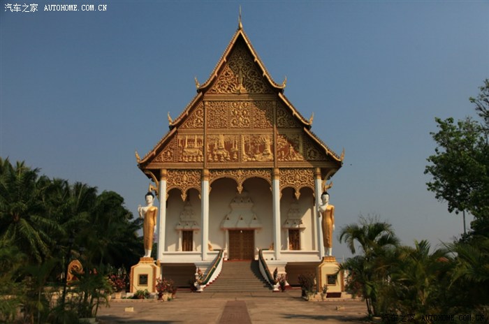 西萨格寺的对面是玉佛寺,建于公元1565年的玉佛寺是赛思他蒂拉所建的王室宗庙,是为了供奉从龙坡邦带来的碧玉佛像而建的。中南半岛上所有国家都瞩目的“僧伽罗佛像”,一直是取得霸主地位的君王一定要掌控的象征。公元1779年被暹罗王入侵洗劫,将玉佛抢走,现今存放于泰国曼古的玉佛寺,泰国却说那原是他们北部省份在十五世纪时就拥有的,所以是取回罢了。