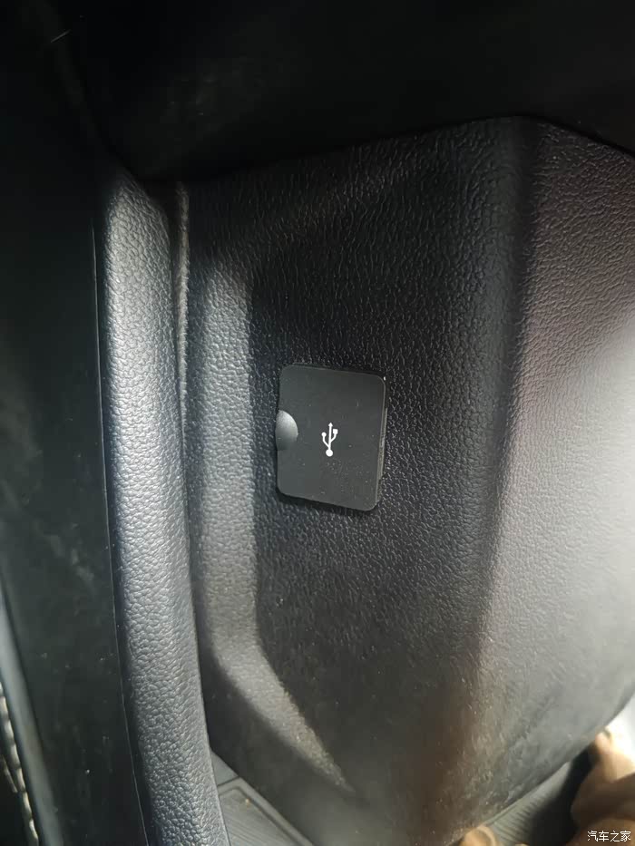 这个是中控台镂空的主驾一侧的位置,还有一个接口线盖,这个除了充电还可以用来插优盘和用数据线连接手机传输内容,所以功能支持的也很全面