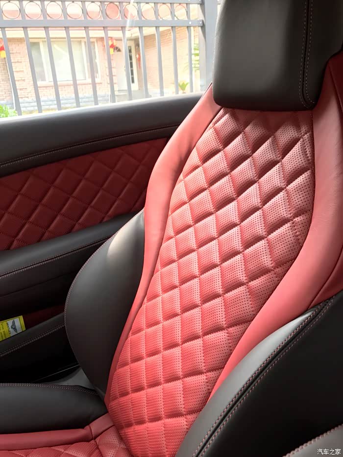 选配中很多亮眼配置 比如21寸的大轮毂 对整车视觉效果是一个很大的提升。红色卡钳很运动,虽然刹车盘没打孔没划线不太酷炫。Mulliner驾驶套件和豪华套件,主要是座椅的皮质和菱形格子。运动排气非常棒,建议一定要选上,手动模式时每次收油降挡时那噼里啪啦的回火声真的可以玩一天。皮质顶篷,没有看过没有选配这个的是什么样子,但是就这个车子而言,皮顶还是挺有档次的。