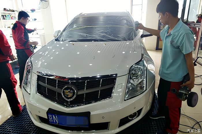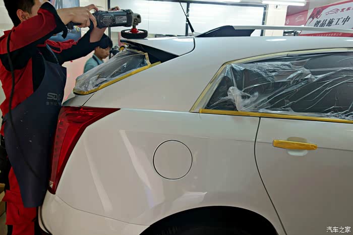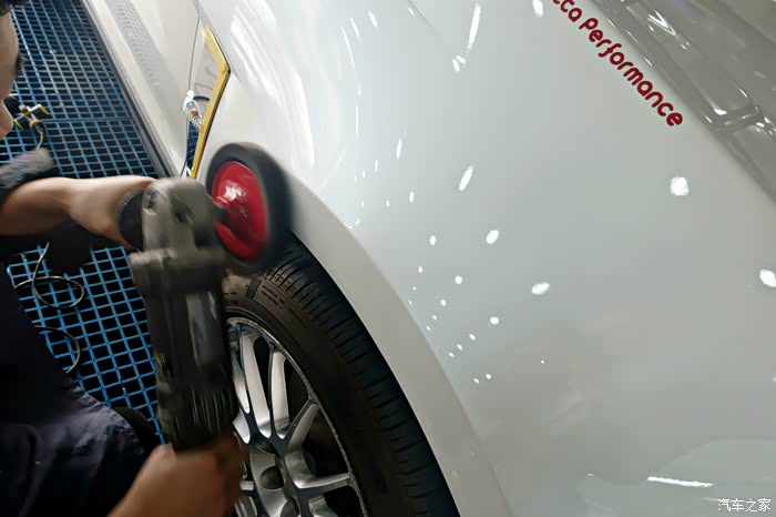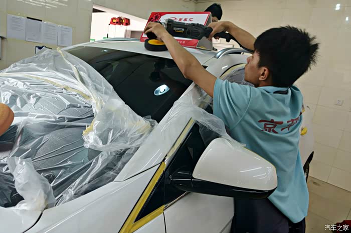 抛光开始。。用抛光机打碎车漆上的氧化膜。工作人员介绍说新车完全不需要这样做,适用于两年以上的车。