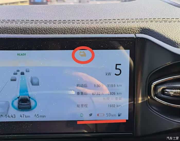 回程情况:第二天回程前不再充电,剩余续航221公里,选择直接启程,刚好测试下极限续航。根据数据测算,是足够返程的,但内心其实还是有点没底。