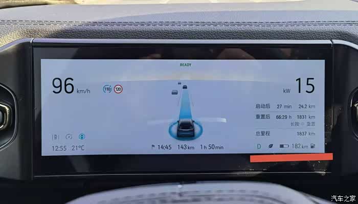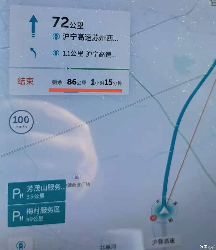 全程继续使用NOP,空调和音箱全开,速度保持在110。行驶前半程表显和实际剩余里程差距保持在40左右,随后逐步缩小到13左右。按照这样的续航下降速度,担心不足以覆盖实际剩余里程,别真在高速上趴窝就搞笑了。