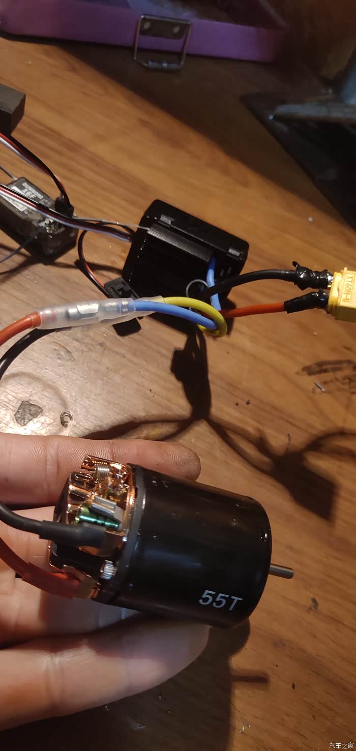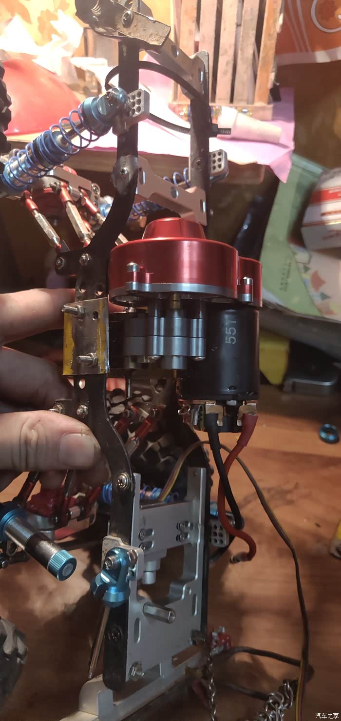 改的是1比10攀爬车用的大轮胎当然轮毂也要改,愁人的是轮毂结合器!莽牛破车用的3mm轴 全网没有卖的3mm转12mm的结合器!于是乎想出了原车用3mm转5mm的六楞结合器!把它磨圆成5mm轴。买了四个5mm轴转12mm六楞结合器 完美。此处还升级了380碳刷马达!电调直接换火凤凰160A电调。好了骆驼黄自喷漆加了贴纸 非常符合硬派的越野车气质。(过程自己想)