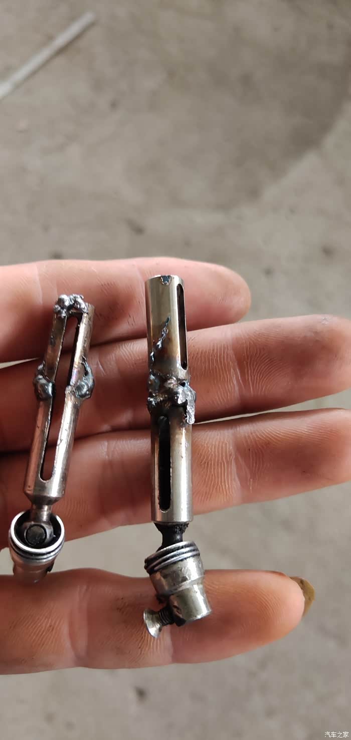 折腾的确实不错 原车传动轴拉长只有6厘米 波箱抬这么高肯定不行!幸好家里有好几个旧的传动轴,切它!两个焊一个……