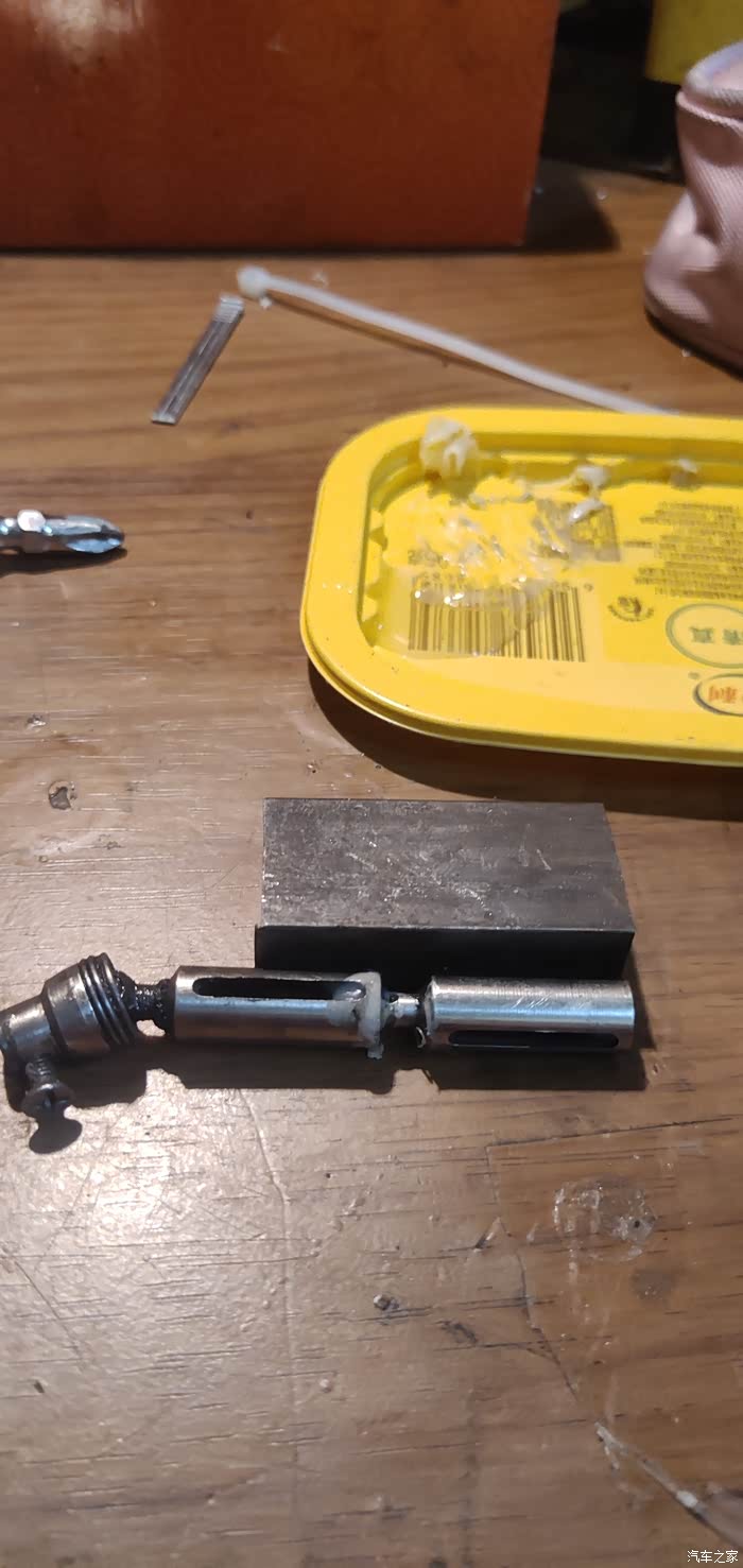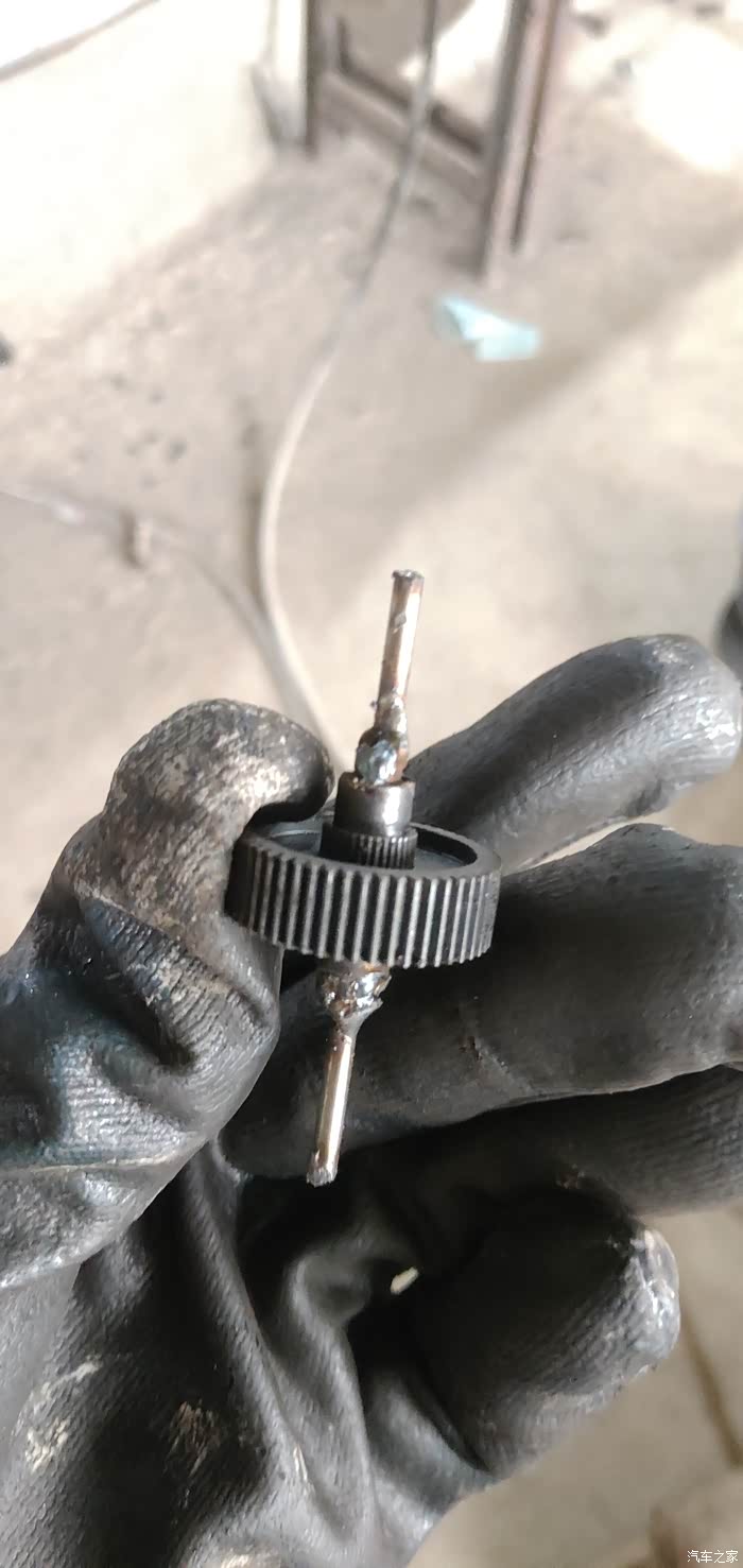 输出轴切了焊个3mm轴,刚好家里有一根3mm钢轴