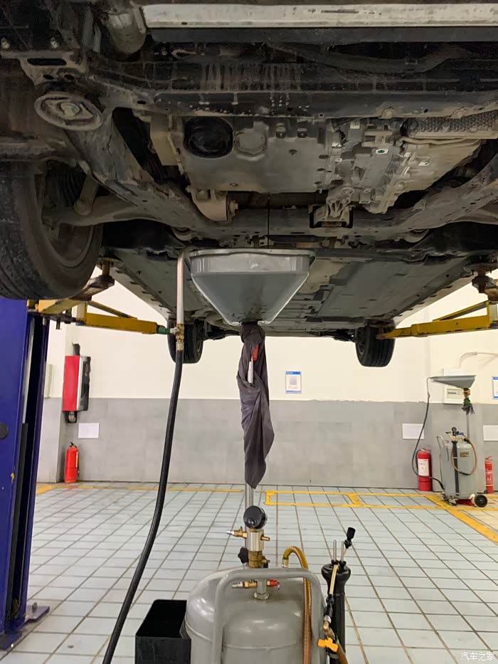 升起架子,开始更换机油……