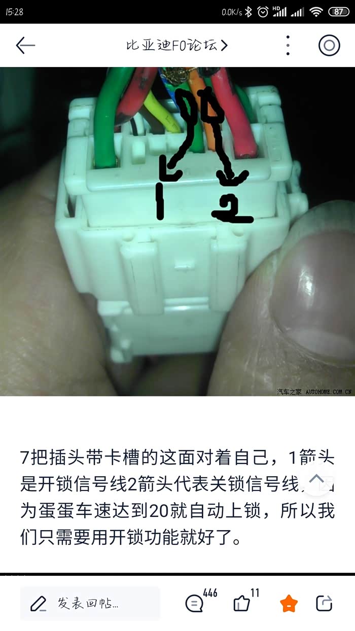 整个过程很简单,主要是那4根线,就是开和锁各两条。之所以发这个帖子是因为看论坛里面的大神发的都是有自动落锁的车型,我的10年的只有插销自己拔的,所以没有他们发的那个线速,下面给你们看一下他们发的线速明显跟我的车型不一样,所以考虑到也有车友会遇到跟我一样的情况就发了个帖子
