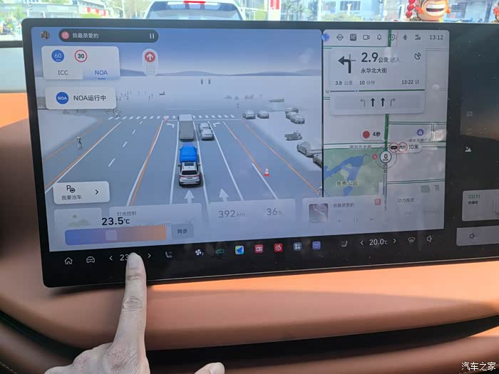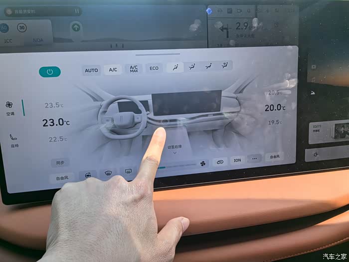 中控屏上的空调操作也很有意思。双击屏幕,就能精准控制单一出风口的开关,想让哪个风口出风就开哪个。滑动屏幕,还能随意调节出风方向,就像有个“无形的手”在帮我调整,满足我对风感的各种需求。二排的独立空调控制面板更是贴心至极。家里老人小孩坐后排,完全能根据自己的感受调节温度和风量,再也不用喊我帮忙,方便又自在。