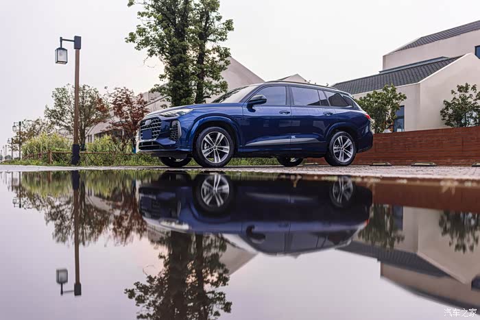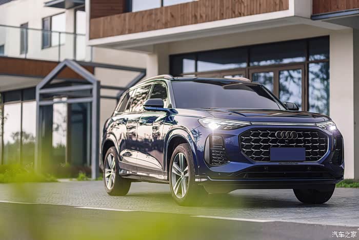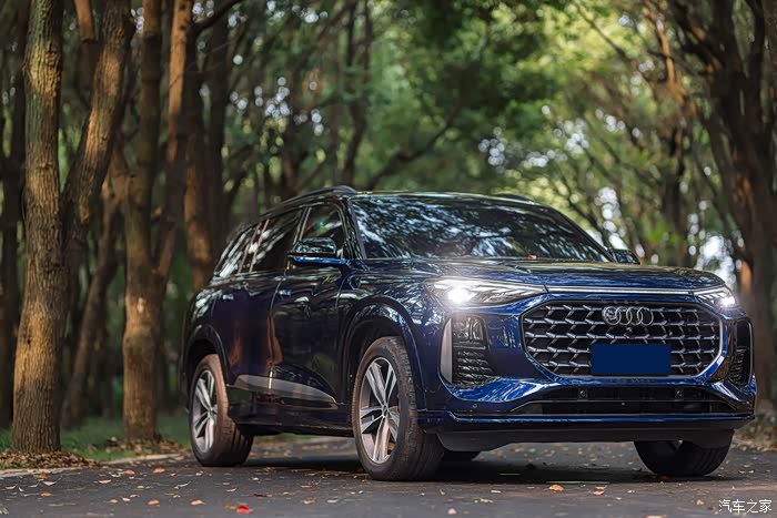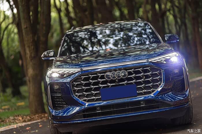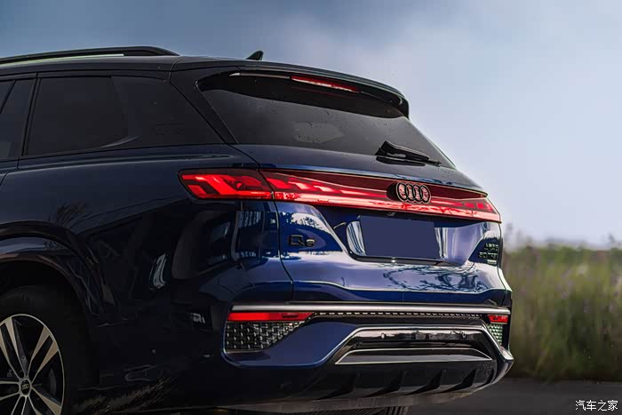 比如奥迪Q6的外观设计的灵感是来自于中国传统文化瑞兽“麒麟”,整个车身的线条是有着昂首挺胸之势,车头的中网上方有一个非常吸睛的贯穿式灯带,如果我没记错的话,这应该是奥迪品牌第一次采用这样的设计。在两侧雾灯位置也有巨大的开口,说实话,论唬人程度,这级别里Q6应该是数一数二的了。