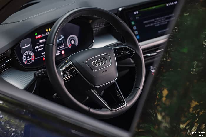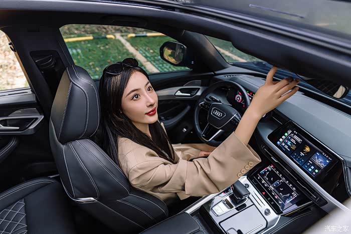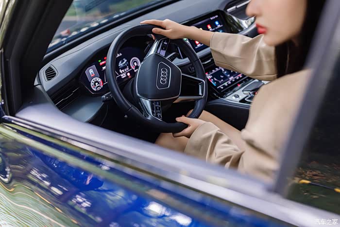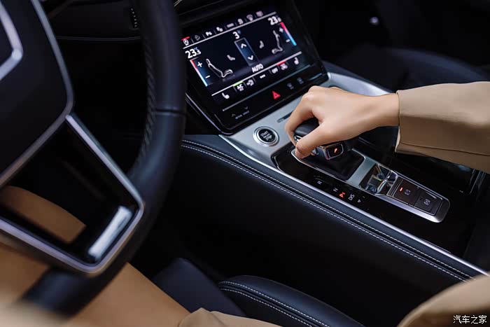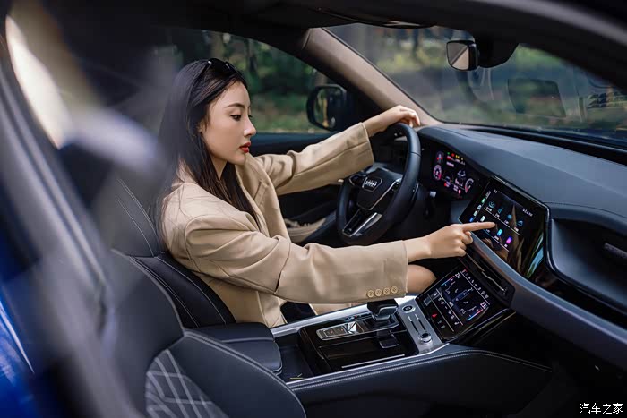 在最后,雯雯才到了驾驶座来聊聊奥迪Q6的前排,她说前排是她和她先生的专座,奥迪Q6的中控台的设计是简洁中带有一点前卫,三块大屏幕各司其职,上方的是多媒体,下方的舒适功能,上手可以说是一点难度都没有,她比较喜欢这个触控带有的震动反馈,让人觉得很有高级感。
