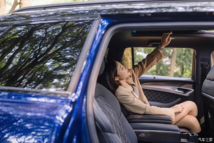 就像说外观时提到的车灯技术,奥迪Q6的后排座椅的功能性也是让我非常羡慕,航空级行政座椅,看这座椅缝线,满满豪华感!名副其实的头等舱舒适体验,座椅支持多向电动调节方式,并且还带有按摩和通风功能,雯雯说她的孩子坐在其他车上是一点都坐不住,而在Q6上,她却是一点都不吵闹,这正是大空间和舒适性所带来的魅力,另外,还有全景大天窗的出色采光,整个车内的空间更是显得非常宽阔,压抑感全无。