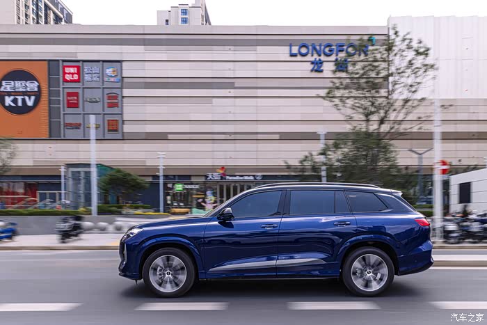 车侧的设计给人一种很强的力量感,不过腰线的处理倒是让人觉得不那么的有攻击性,圆润的曲线还是挺有亲和力的,车门下方的饰条点缀的也是恰到好处,增加了一点运动感,也不让整个侧面变得单调,不过这么高的车身,我觉得雯雯后期可以加装一个电动踏板,方便老人和孩子上下车。