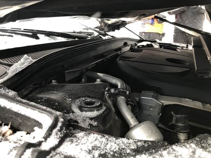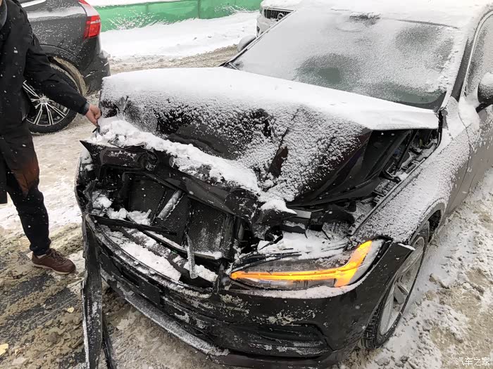 保险公司的工作人员到了以后车主上有盖了一层雪,随着保险公司的人进行沟通又拍了几张照片