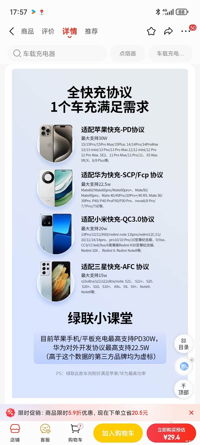 绿联的车载快充,价格不贵,支持的品牌还挺多,我建议这些电子的产品还是买好一些的,对车子也好,有这个跑长途不用担心手机电量。