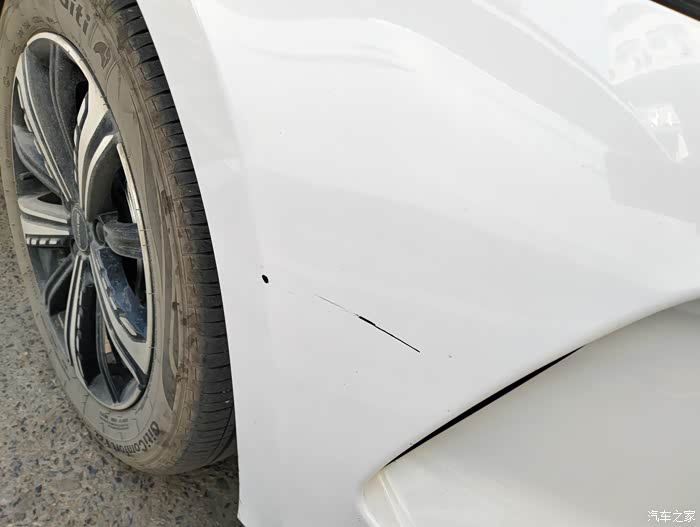 前车车主刚好在车上,立马下来查看车辆受损情况,我看了一下,他车的屁股有一条很小的擦痕(大概2厘米),我的车右前有一条约10厘米的擦痕,除此之外没有其他损失。