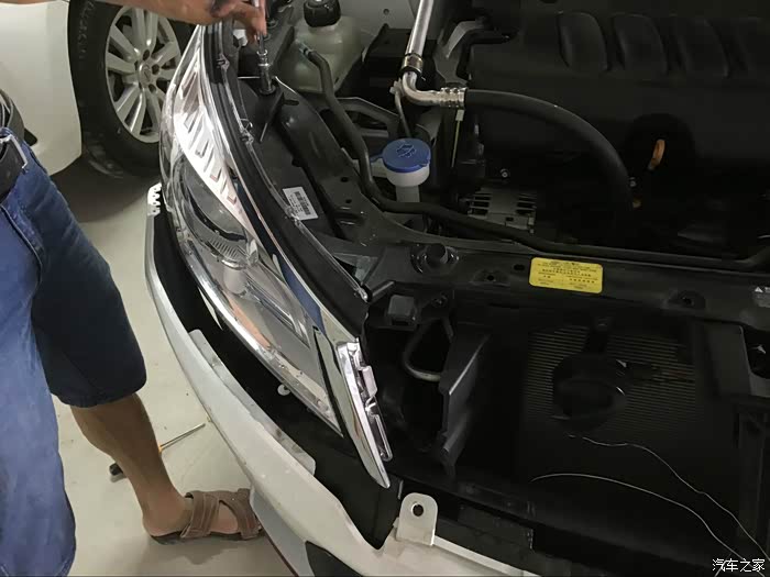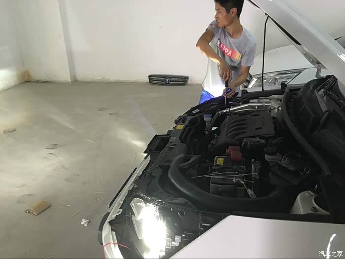 此时灯已经完全拆掉,在保险杠处绑个铁丝就不用完整拆下