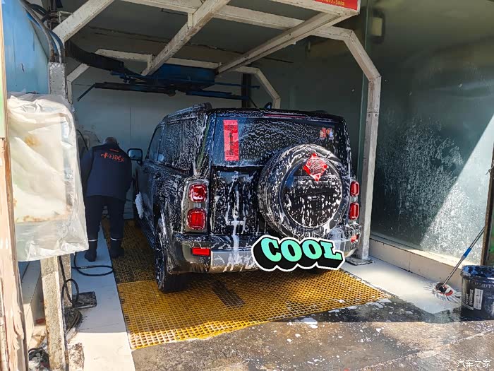作为方盒子造型的硬派SUV,猛龙的棱角分明,之前听说自动洗车机容易刮花车漆,所以从不敢用。这次人工洗车虽然避免了机器刷毛的伤害,但洗车工的手法确实粗糙,泡沫用的是普通清洁剂(怀疑掺了洗衣粉),冲水后残留水渍明显,而且就是拿着拖布拖一拖,洗的可能不咋干净。
