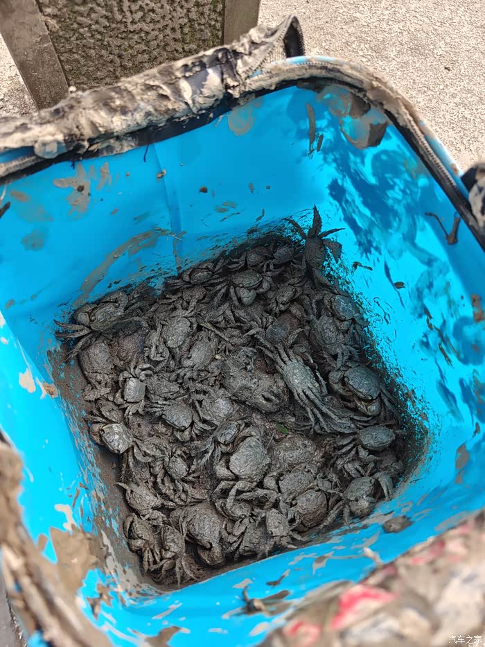 河边的芦苇荡里有很多,带上小水桶,劳保手套,小抄网,雨鞋就可以轻松抓螃蟹啦,地上很多小洞,一挖一个准。四个人很快就抓了一小桶。