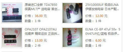 在用了一段时间后,我一直觉得徐港DVD的输出功率太小了,感觉无法充分推动我升级的喇叭,后来一查说明书,才知道徐港DVD的输出功率实际只有25W,无法充分推动我升级的至少需要40W的喇叭。于是一直就想对音响的功放进行升级,本来想直接安装四路功放的,但是考虑到安装功放还需要加装不少配件,而且空间也不允许,后来就想通过磨机的方法,对DVD的功放、运放进行升级。于是就在网上搜索磨机的案例,但是找来找去就是找不到徐港导航的例子,没办法只好参考其他品牌机型的案例,从网上买来传说中的发烧级功放TDA7850(MLT版的,据说是进口的效果比国产的CHN版的好很多)、发烧级运放OPA2107(因为不知道徐港的`主板上有几个,我就买了2个)、伊娜1万μF滤波电容1个、伊娜 47uf 50v电容1个、德国威马发烧电容 WIMA 63V0.1UF 1个,总共花了95.5元,店家承诺可以提供技术支持。