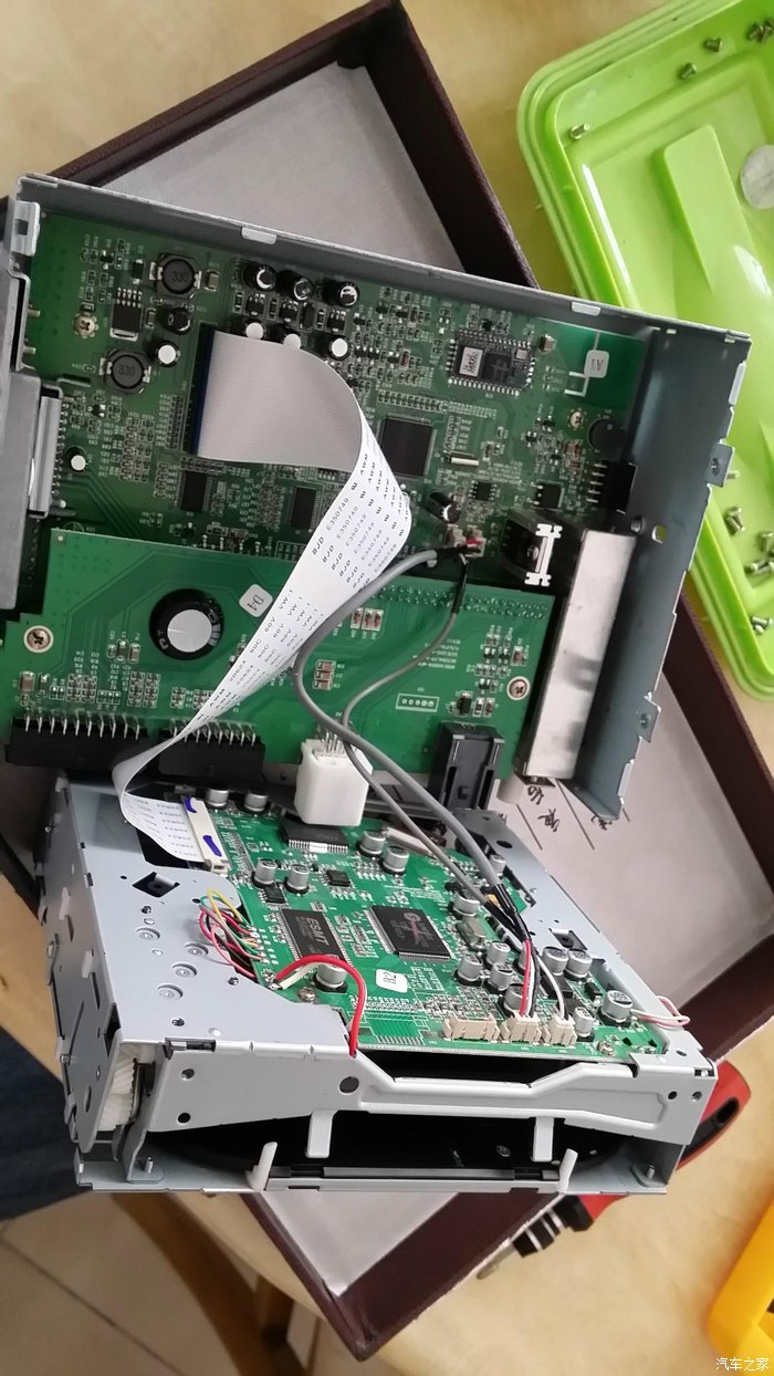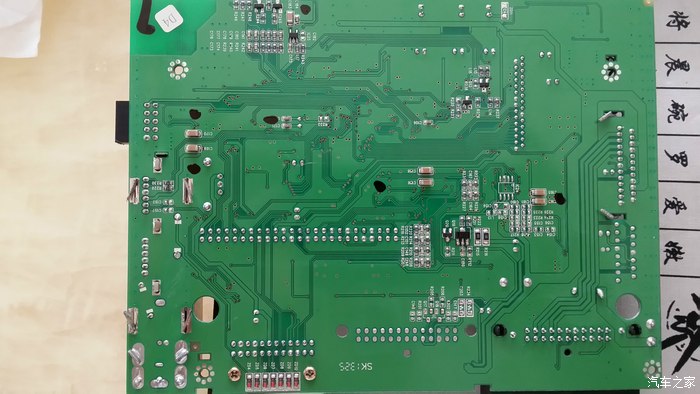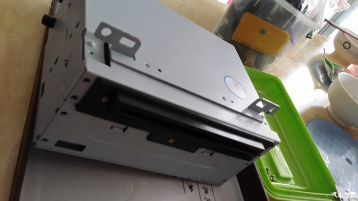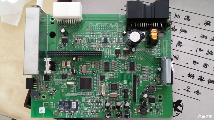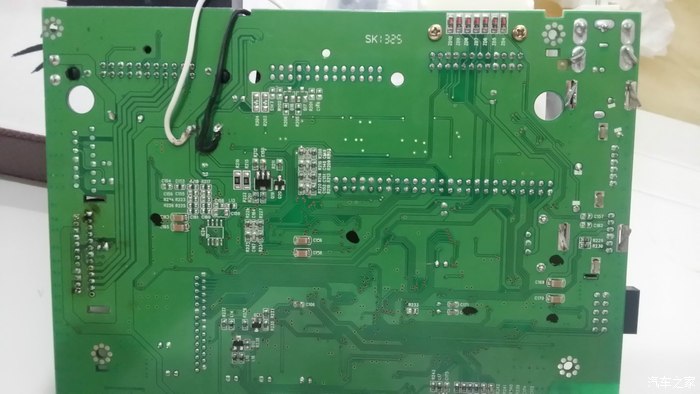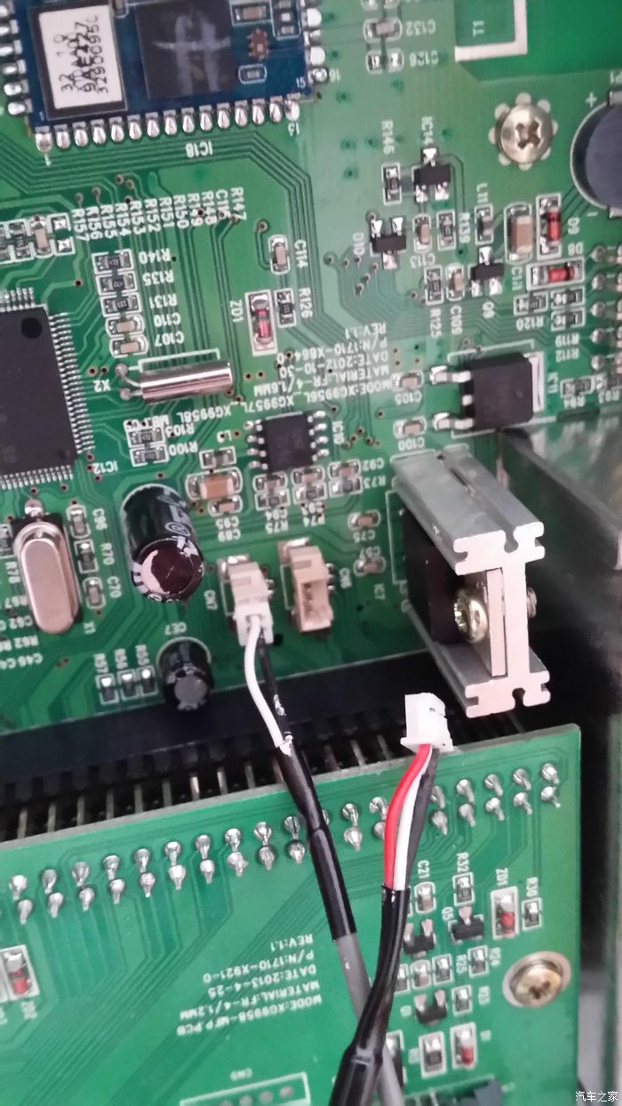 最后装上固定支架,涂上硅脂开始复原。然后按相反顺序装机试试看,“OH,NO……”怎么没声音,崩溃了。我在车里面足足坐了有5分钟,拿出手机看拍下来的过程照片,回想到底那步出错了,不应该啊,感觉都没错。最后没办法只好打电话问卖家,卖家说可能是我把其中某几根脚焊连在一起了,我感觉应该没有才对,抱着试试看的想法,又再拆机查看主板上焊接的功放的24根脚,果然发现其中有2根脚有一小点连在了一起,用刀子轻轻划开,并将每根脚重新再焊牢一点,然后重新装机。