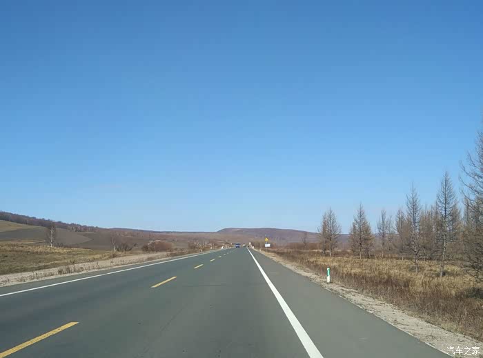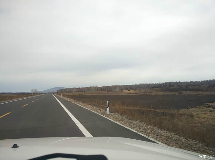 进了黑龙江以后的路就变成水泥路了,很平整,这样的路下雪以后更滑......