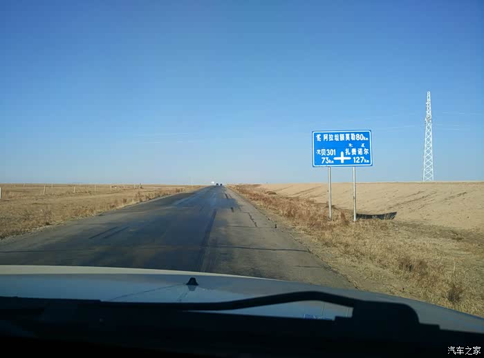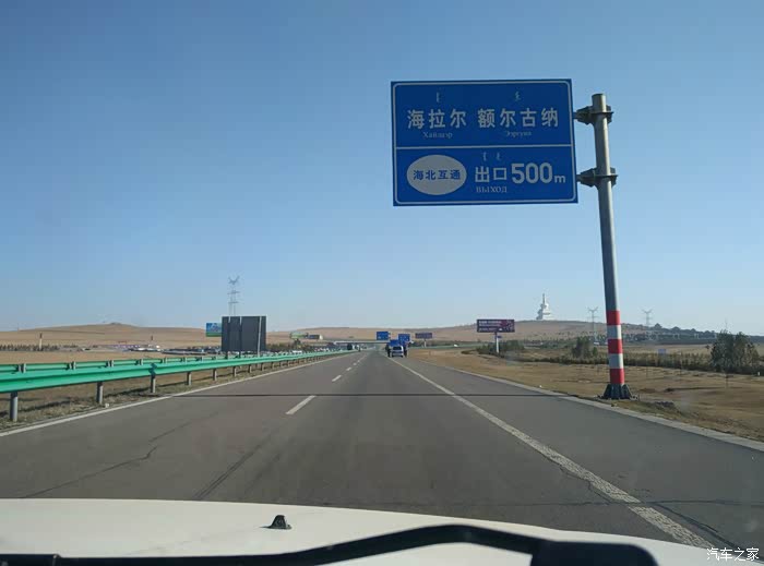 这是新巴尔虎右旗,因为着急赶路,所以也没进去。从外环路就走了。交警高速度我们顺着这条路一直走就到满洲里了。可是后来有个很大的十字路口,然后我俩就晕了,又没路牌,问了好几个人都说不知道,我就无语了....后来好不容易才找到路