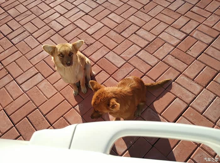这是在冷极那个标志的对面,有个旅游驿站,本来停下来是拍照片的,这俩小家伙看到我们过来直接就跑过来了。呵呵呵,然后蹲在车门口就抬头等着。我开始没明白是怎么回事,后来一想原来这俩货是在等吃的啊,哈哈,然后我拿出来一根大大的火腿肠,是那种含肉量比较高的那种,咬成一小块一小块的喂它俩,吃的那叫个高兴啊,呵呵,最后我们走的时候它们还在追我,但是追了几十米就不追了,回去等下批过路者了。