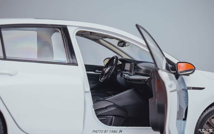 当然我发现了这台车有一点点的不足,实车为与车身不同颜色的黑色外后视镜,更显运动,车模则为白色,并未正确还原颜色,有些可惜。