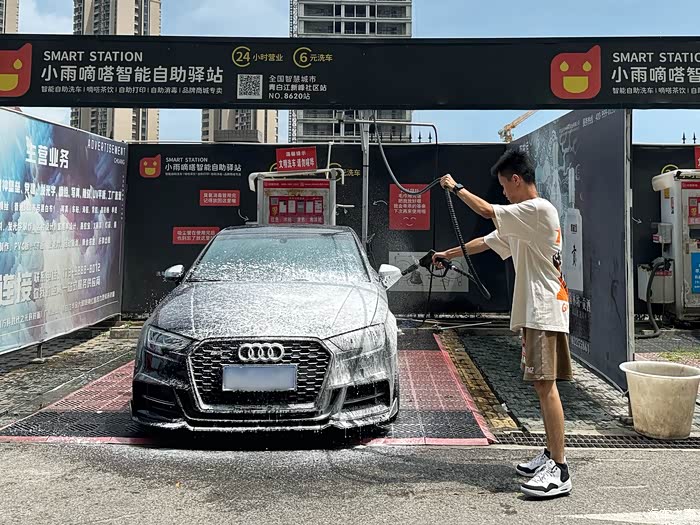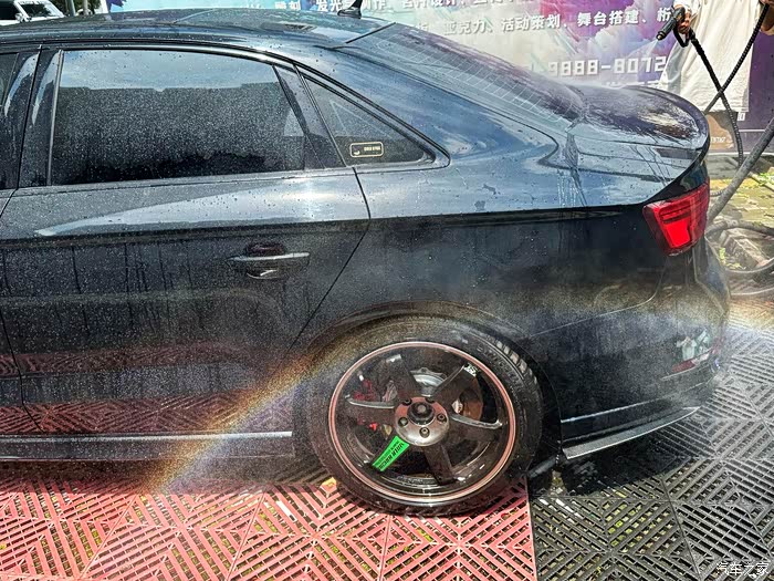 今天为了给他两拍照,专门顶着35度的火辣太阳出门洗车。夏天自己动手撸车的浪漫就是,你随时都能看见彩虹~