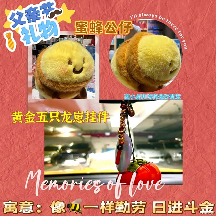 和老爸看完岚图FREE318,小朋友带着给我买的礼物找我们集合,一个蜜蜂的公仔和一个周大福的五只小龙挂件,小朋友说让我像蜜蜂一样努力的工作,赚多多的钱,这辈子麻烦您啦!这个礼物的寓意让我哭笑不得,但我内心却是很开心,父爱不就应该如巨轮,划破风浪,带他们向前。父爱不就应该如烛火,照亮黑暗,温暖他们心窝。