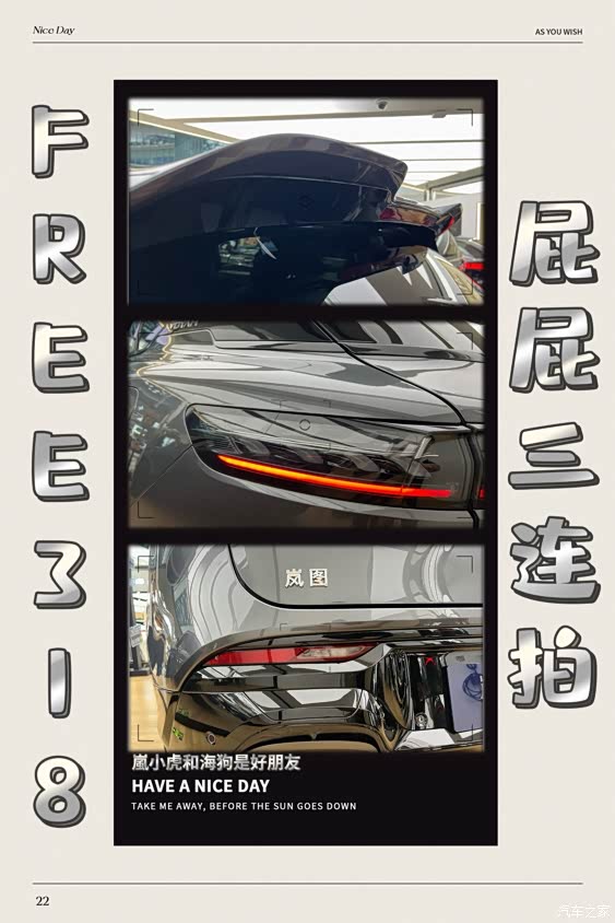 今天我就和大家分享一下,来自一位63岁老baby对FREE318的观后感。首先是外观,老爸觉得FREE318的前脸过于低趴,没有给到他一台硬派越野车的冲击,更偏向于运动型SUV,很适合年轻人,老爸认为FREE318也很帅,只是不适合他的年龄了。他说他需要的是浑厚感,我倒也是理解他的想法。