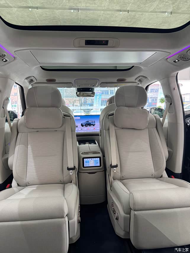 日常使用中,细节设计体现人性化。二排90°宽开门角度方便上下车,三排配备独立U***充电口和杯架。车内多处储物格设计巧妙:中央扶手箱隐藏冷暖箱,门板卡槽可收纳平板,三排座椅下方暗藏220V电源,露营时外接电磁炉或投影仪毫无压力。车身配备的蟹行模式与后轮转向技术,让5米2的大车转弯半径仅5米,窄路掉头轻松写意。