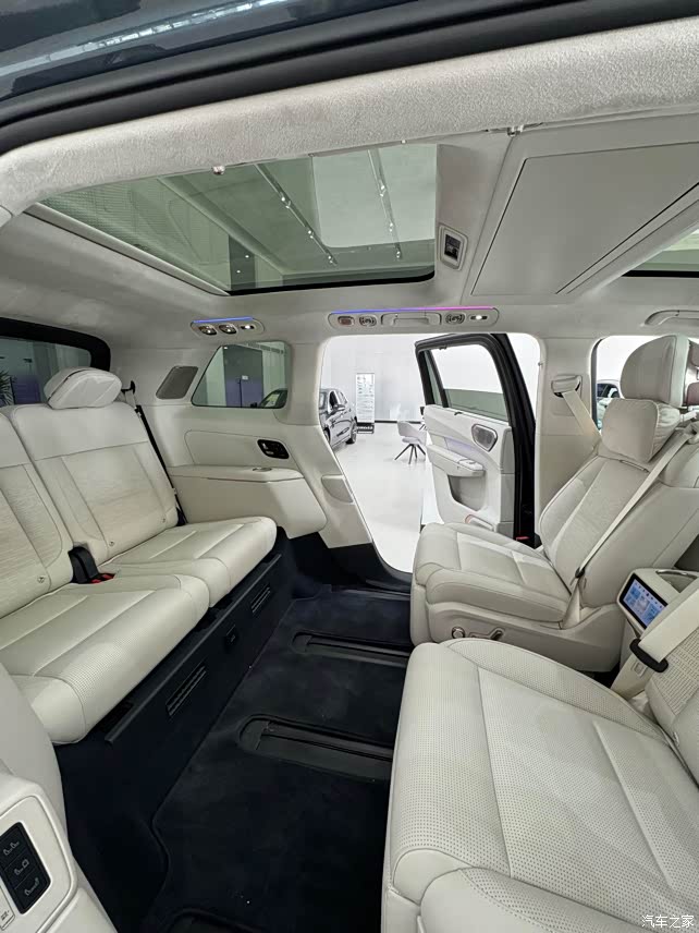 智能交互贯穿全车。30英寸6K一体式天际屏与后排12.66英寸娱乐屏形成多屏联动,导航信息可三指飞屏至副驾,孩子观看动画时不影响主驾视线。车机支持手机无线投屏,旅途无聊时秒变移动影院。语音控制覆盖空调、座椅、屏幕等功能,方言识别精准,老人操作毫无压力。夜间行车时,256色氛围灯随音乐律动变化,配合哈曼卡顿音响的环绕声场,营造沉浸式体验。