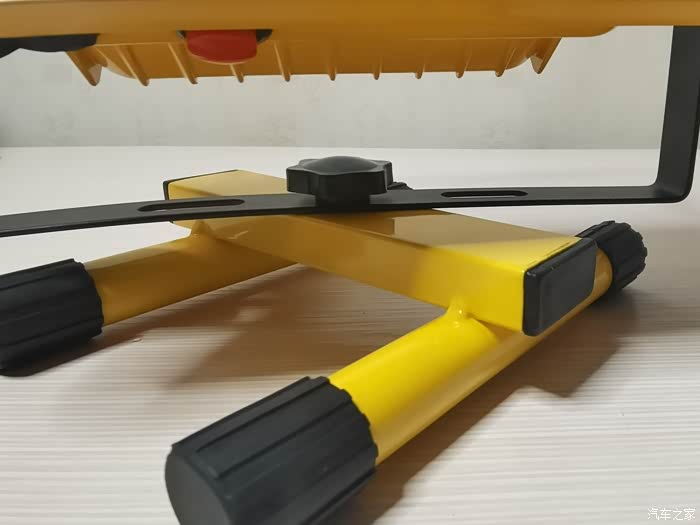 组装很简单,直接将投光灯的黑色铁片固定在底座上即可,底座两头都带有防滑的橡胶垫圈