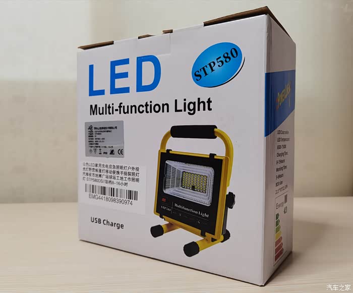 白色包装盒,包装盒有点薄,盒体上有一些简明的介绍,比如这款投光灯的型号为STP580DS,三档变光,工作时长为8-16小时等等