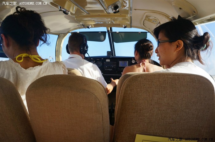 一架飞机坐六人(加机长),上飞机前先要托运行李和称体重,体重最轻的可以做副驾驶。老婆去程没坐到副驾驶,我毫无压力的坐在最后一排,不能跟机长合照了,只好单独拍了几张,老婆和同行女生一直对机长大叫handsome,机长也很配合拍照。