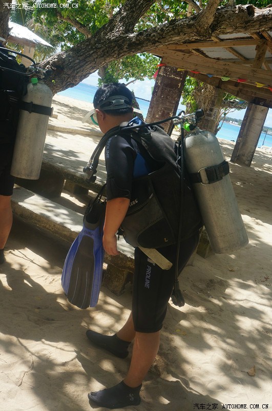 中午回去稍作休息,准备下午的体验潜水了,老婆终于换上了最后一套衣服。