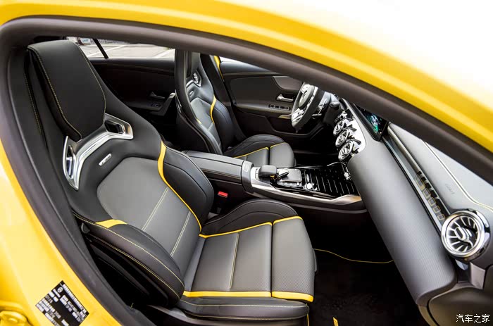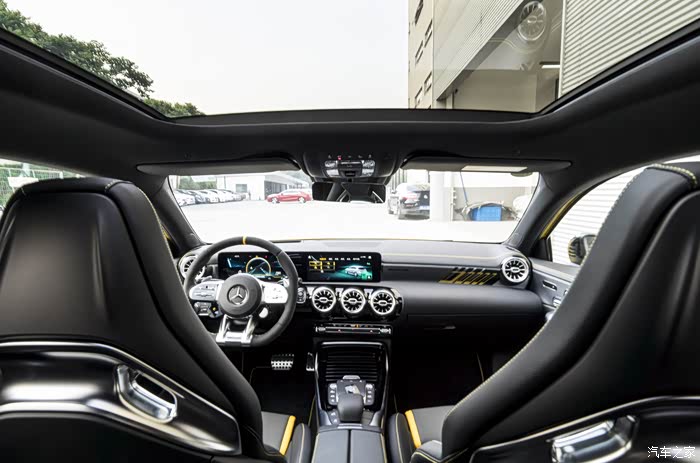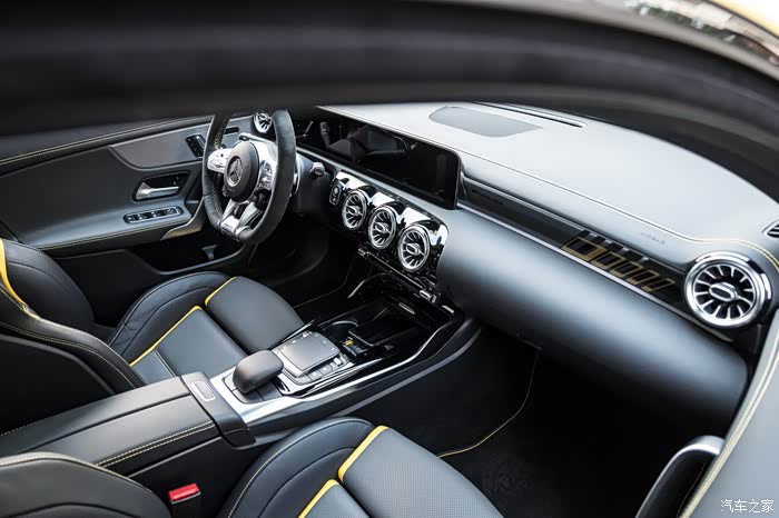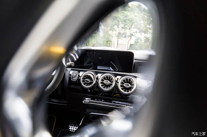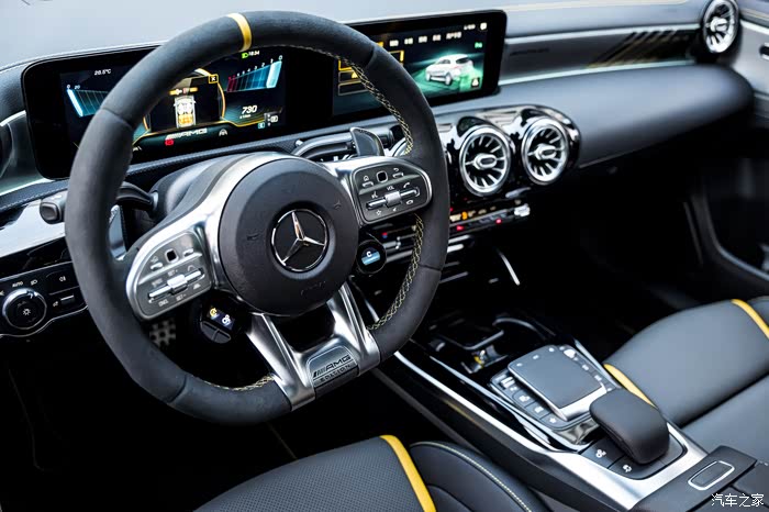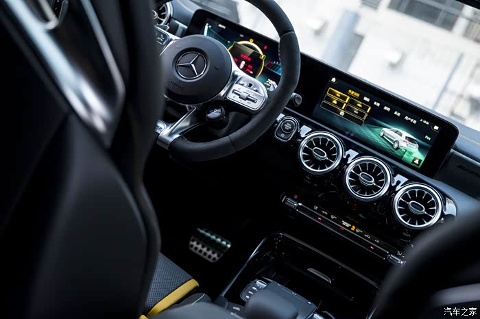 如果看惯了奔驰内饰,这台A45S并没有太多的突破与不同,仪表台一塊大屏中两个分屏,已经是所有中规奔驰系列的基本。