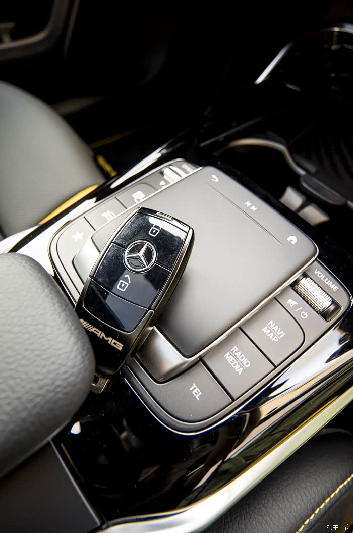 虽然已经是AMG一人一机的传统系列,换档也同样放在方向盘右边杆位,而在中控下传统换档杆位置,只是造型相似换档杆的扶手而已。