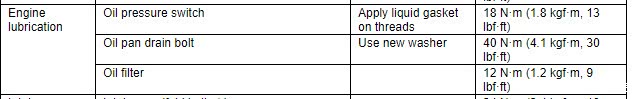 上图是Type-R的K20C1引擎的油底壳螺丝和油滤的拧紧扭矩值。(好像普通思域的L15B8也是一样的)